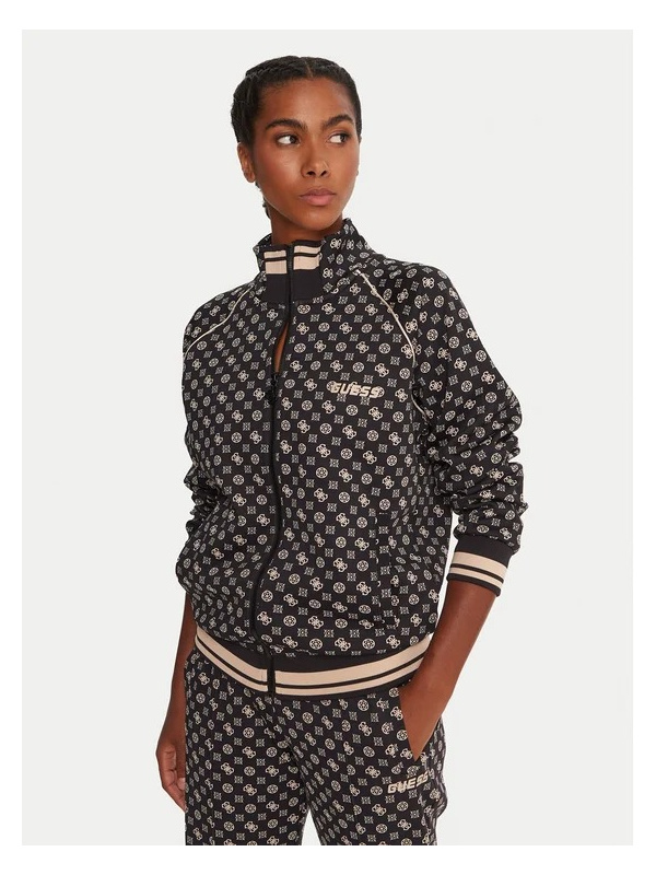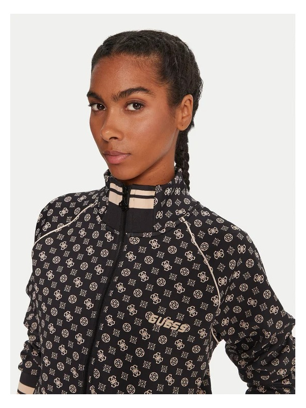 Ženska crna Guess dukserica s visokim ovratnikom i all-over monogramom