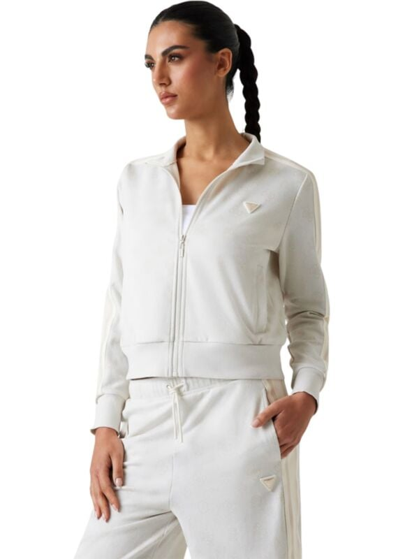 Ženska bijela Guess dukserica s visokim ovratnikom i zipom