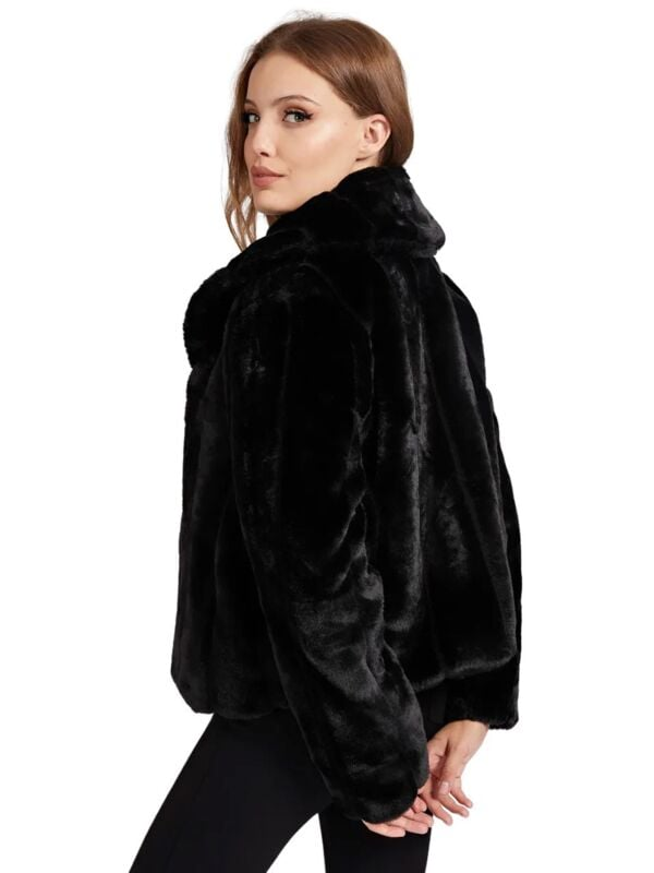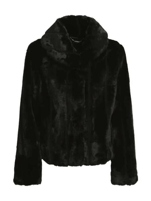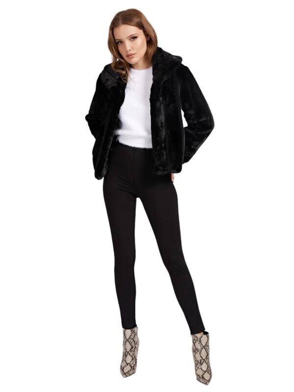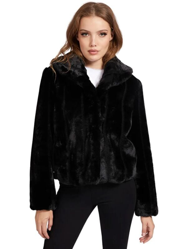 Ženska crna Guess Sophy bunda od eko krzna