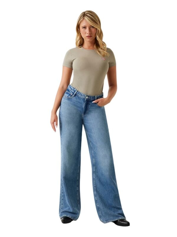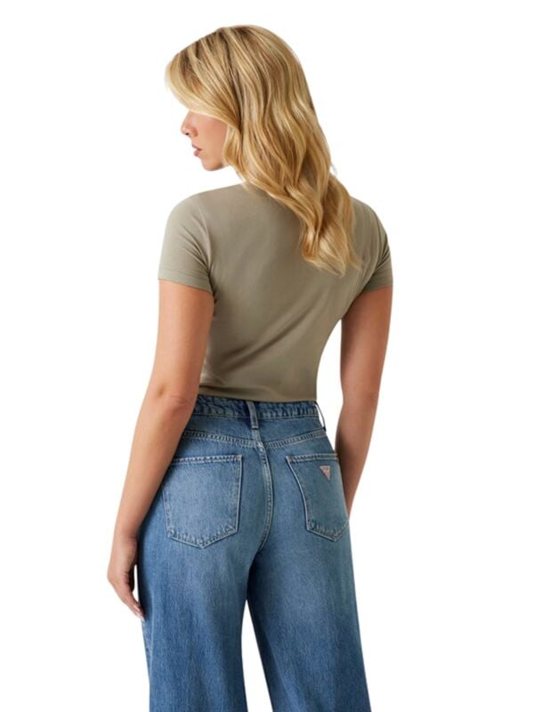 Ženska maslinasto-zelena Guess majica kratkih rukava s logom na prsima