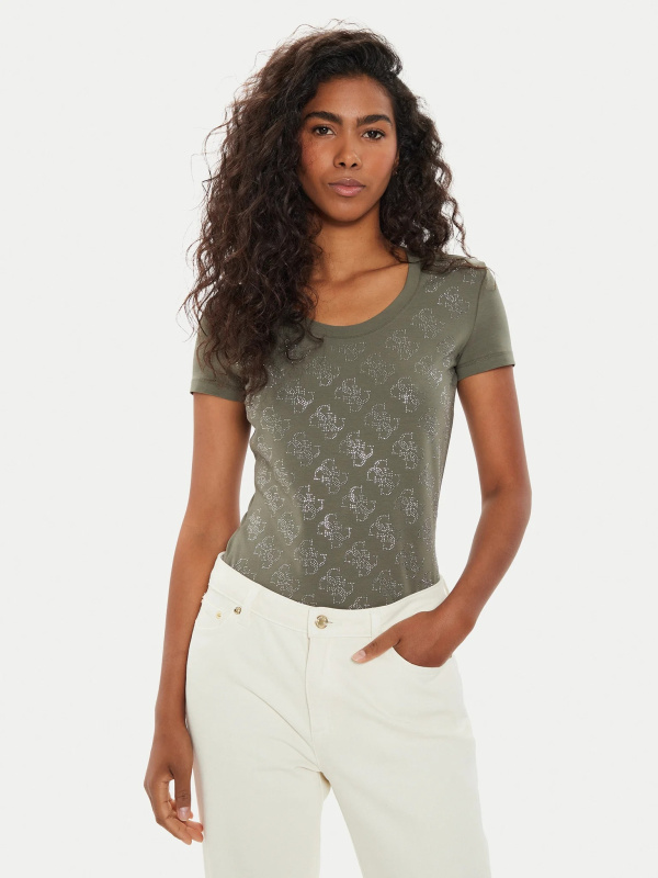 Ženska zelena Guess majica kratkih rukava s logo monogramom