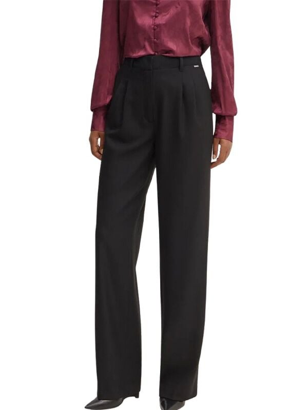 Ženske crne Guess hlače s crtom i dubokim strukom