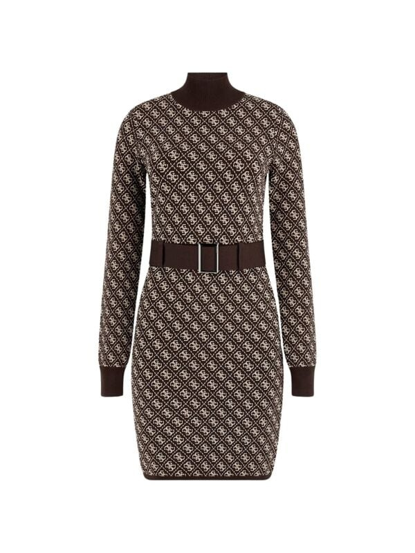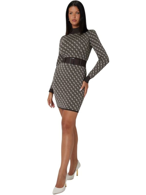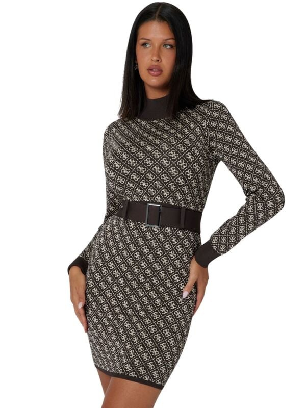 Ženska tamnosmeđa logo Guess Lise haljina sa remenom