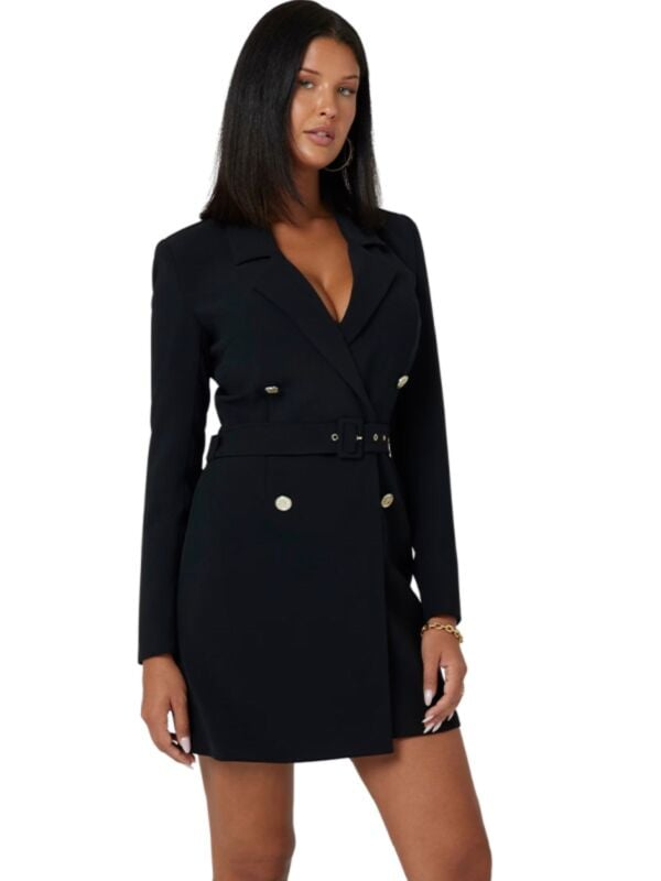 Ženska crna Guess mini blejzer haljina na preklop s remenom