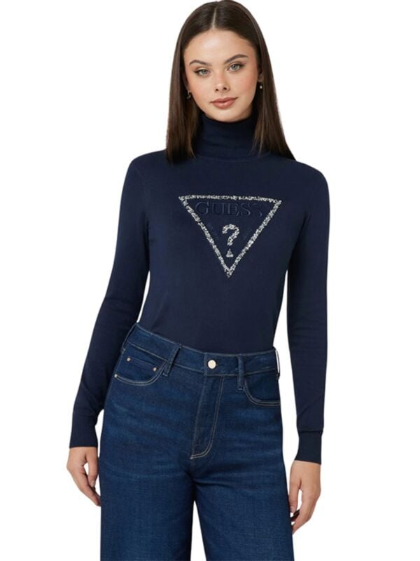 Ženska tamnoplava Guess dolčevita s maxi logom na prsima