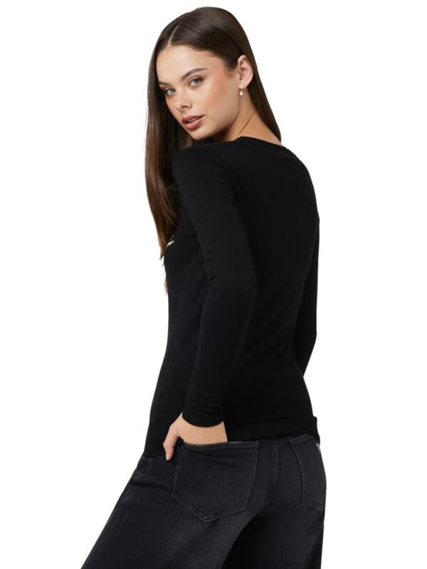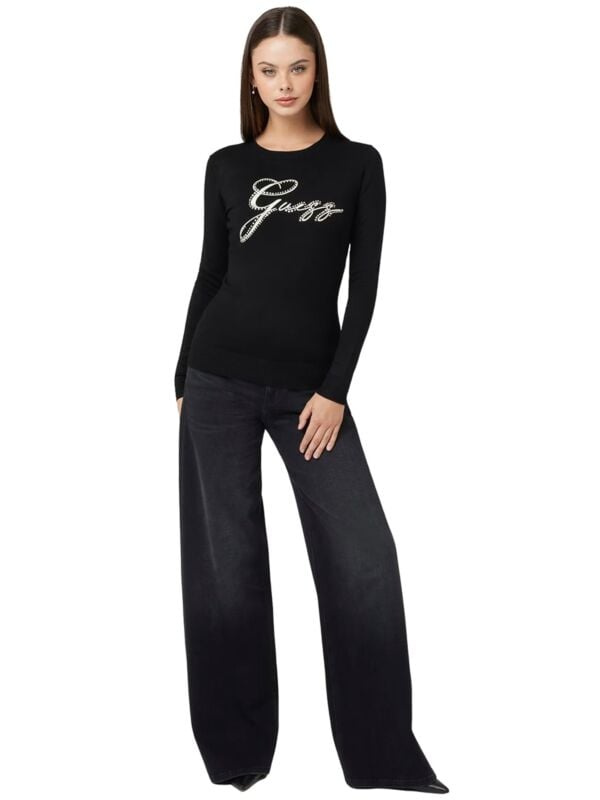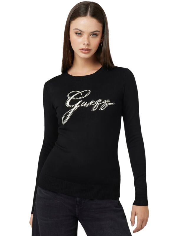 Ženski crni Guess džemper sa srebrenim logoom na cirkonima