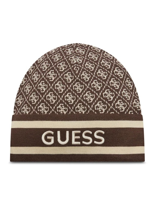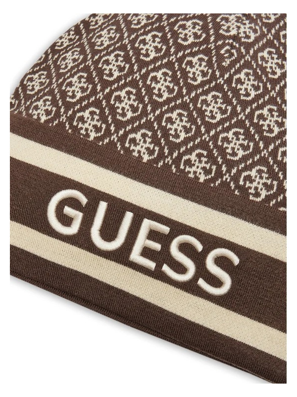 Ženska smeđa Guess kapa s logom i all-over monogramom