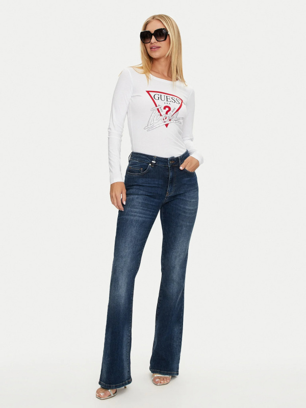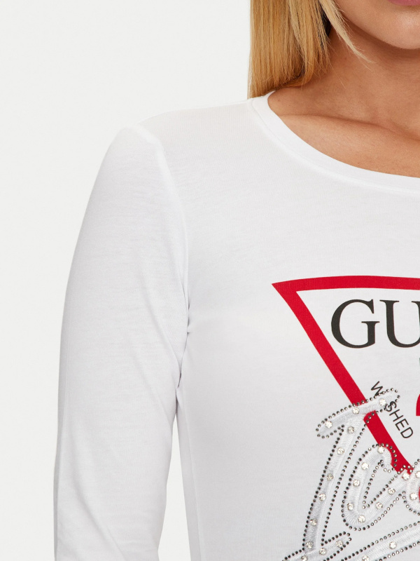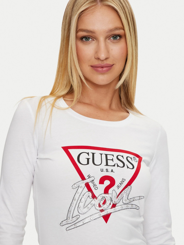 Ženska bijela Guess majica dugih rukava s logo printom na prsima