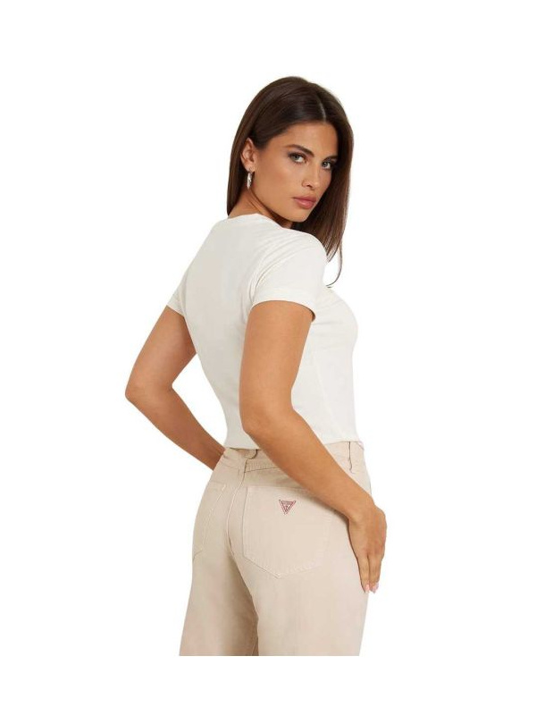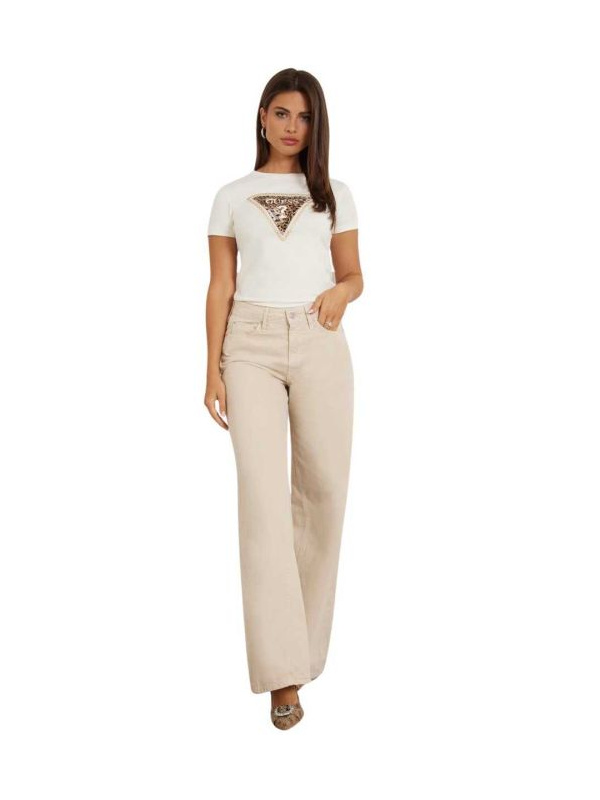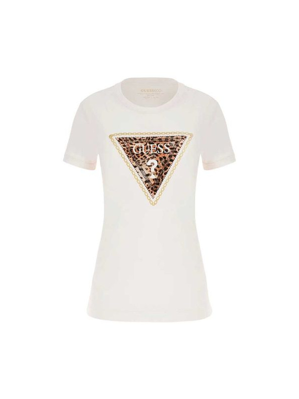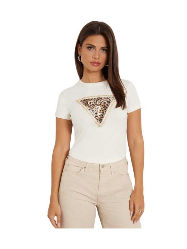 Ženska krem bijela Guess majica kratkih rukava s trouglastim leopard print logom