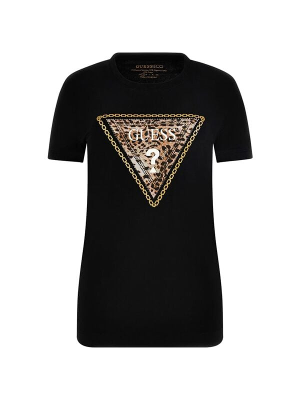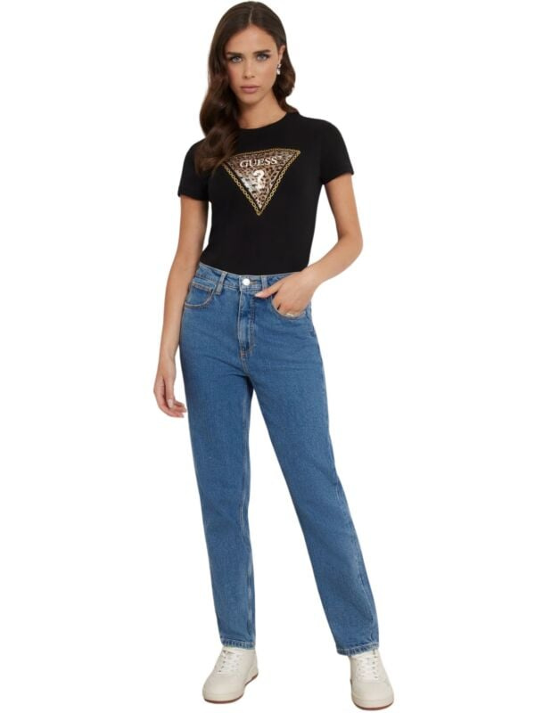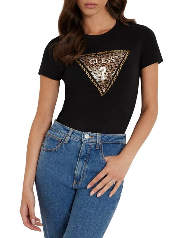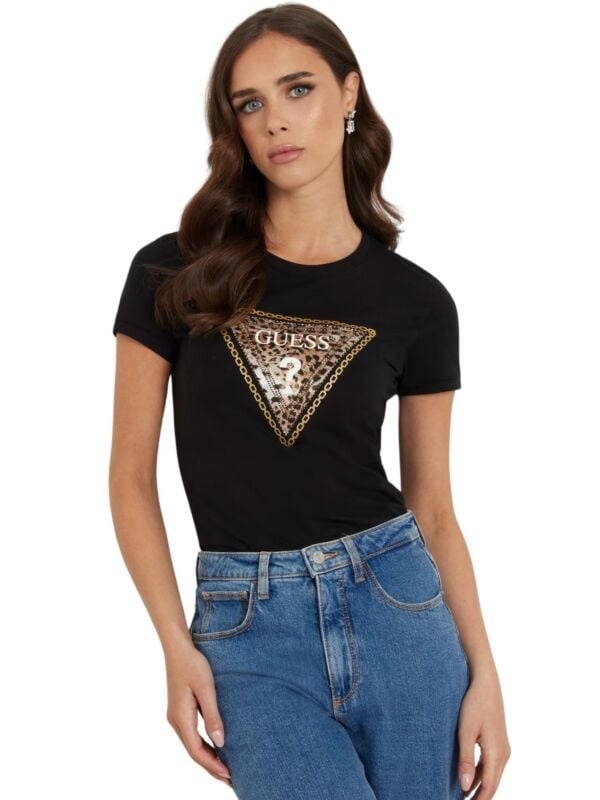 Ženska crna Guess majica kratkih rukava s trouglastim logom