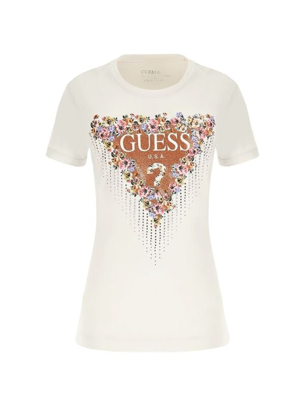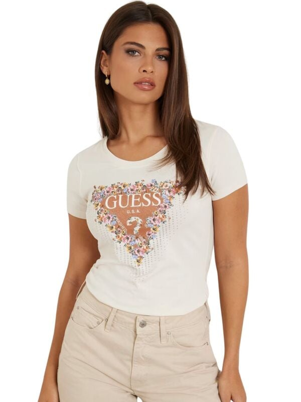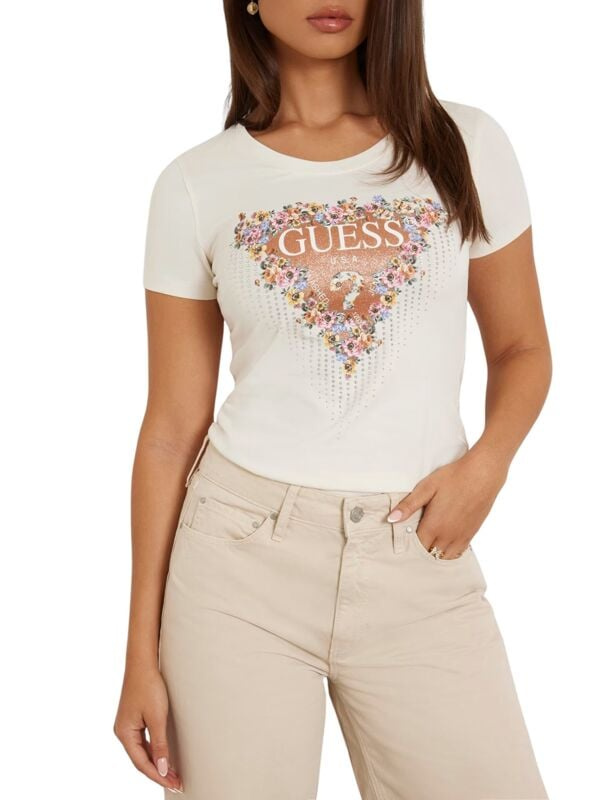 Ženska bijela Guess majica sa cvijetnim logo printom