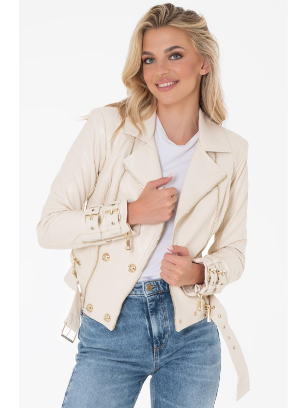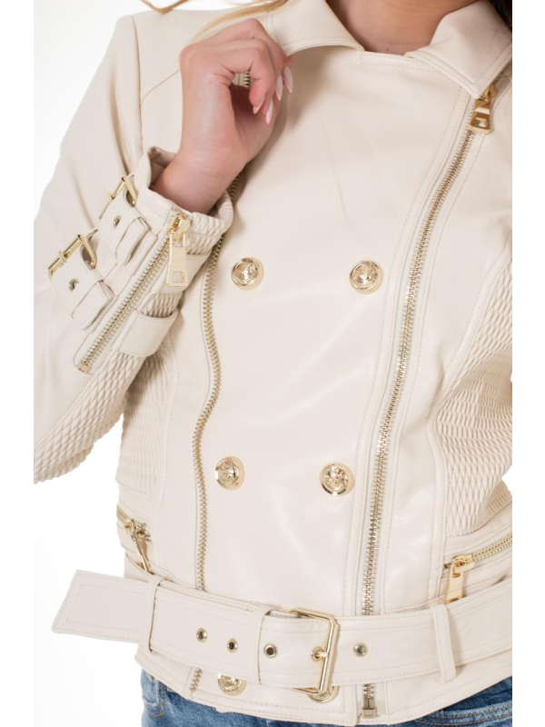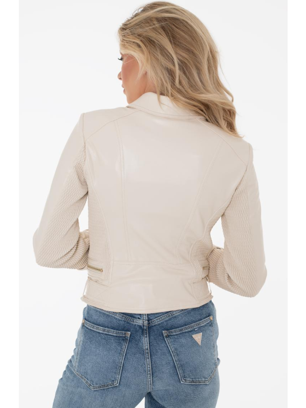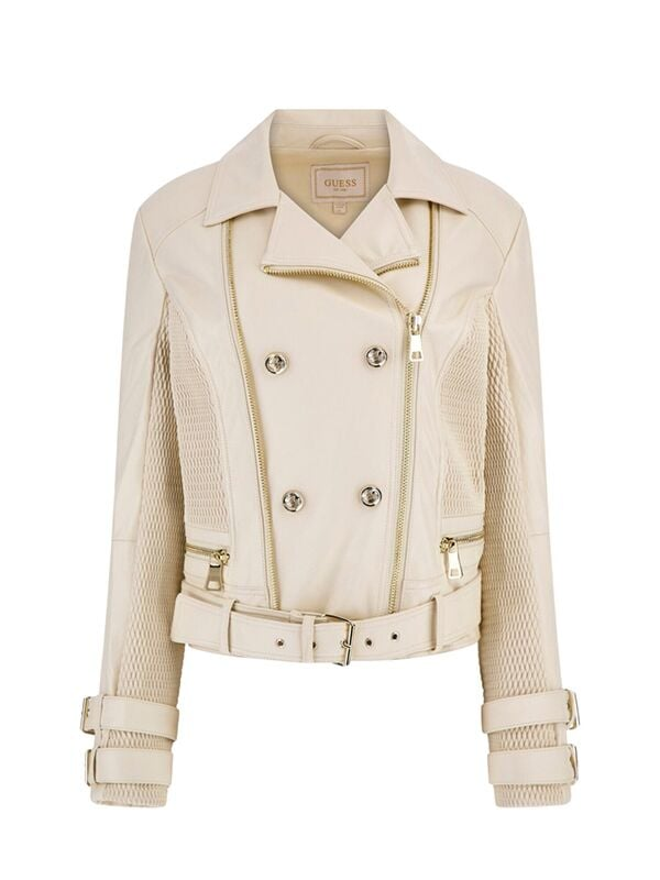 Ženska Guess Myla bež jakna za prijelazni period sa zip kopčanjem i remenom oko struka