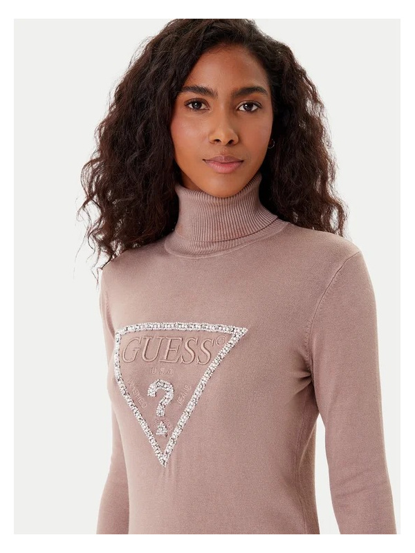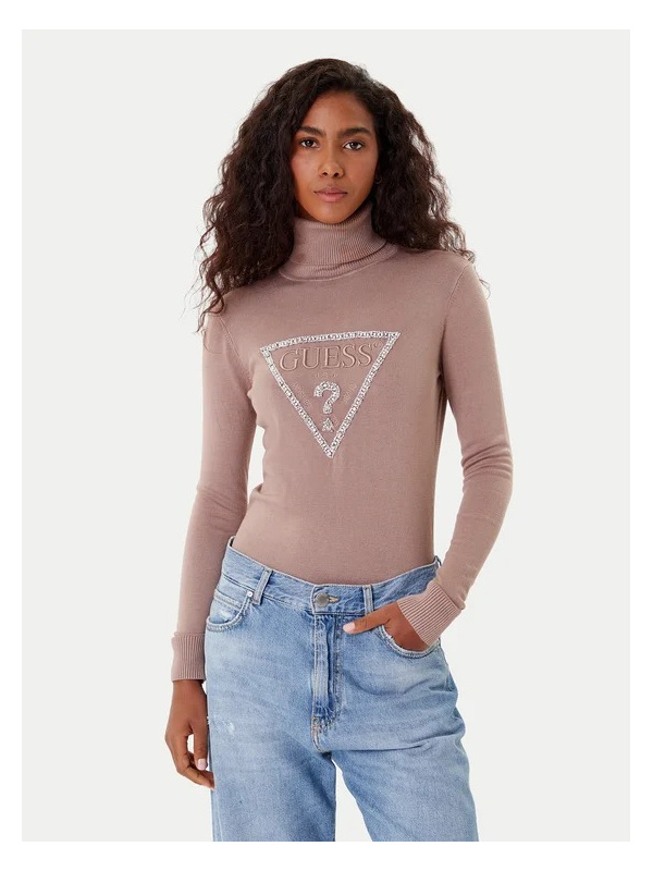 Ženski ružičasti Guess pulover s rolkom i logo printom