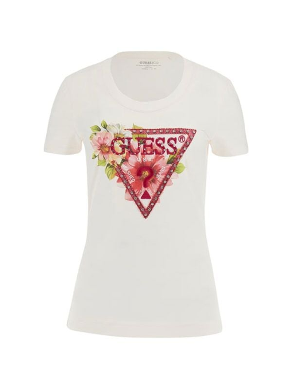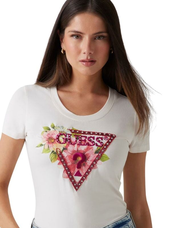 Ženska bijela Guess majica kratkih rukava s logom i cirkonima