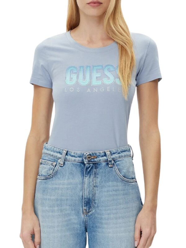 Ženska svijetloplava Guess majica kratkih rukava s logom na prsima