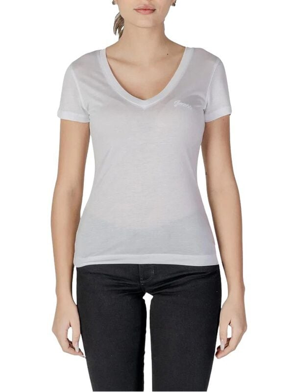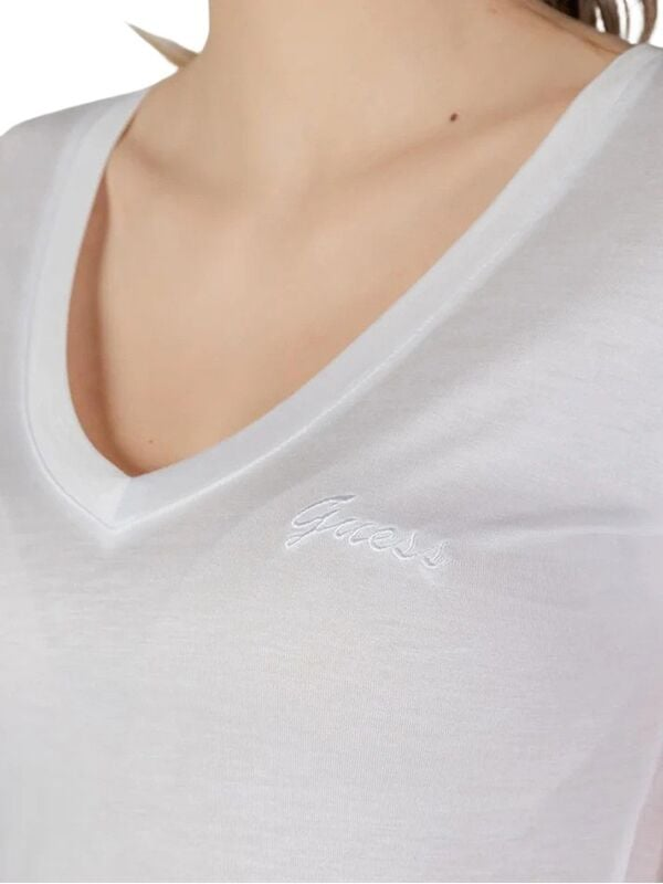 Ženska bijela Guess majica kratkih rukava s V izrezom i logo detaljem
