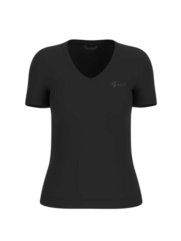 Ženska crna Guess majica s V-izrezom i logom na prsima