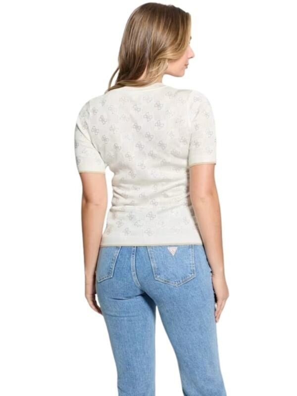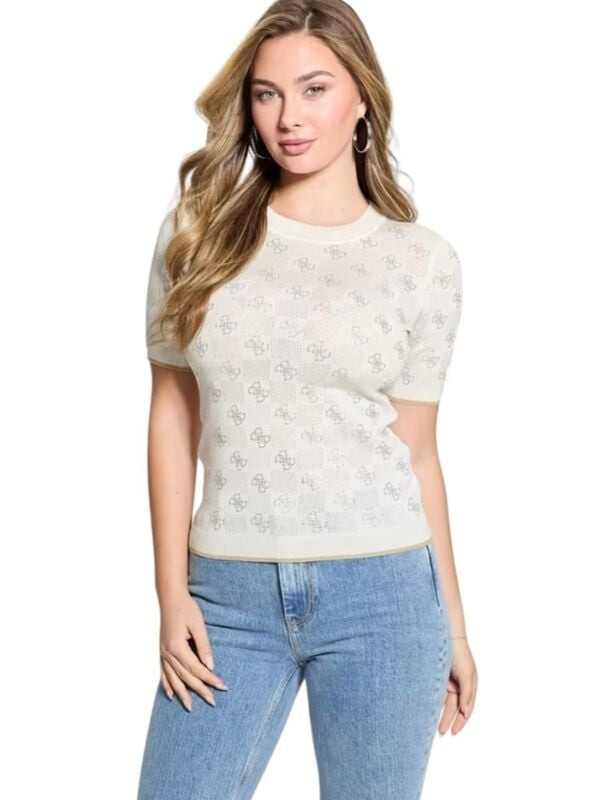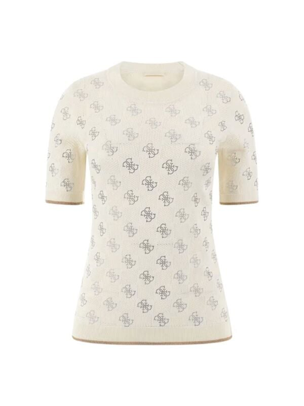 Ženski Guess Rosie bež pulover pratkih rukava s all-over logo printom