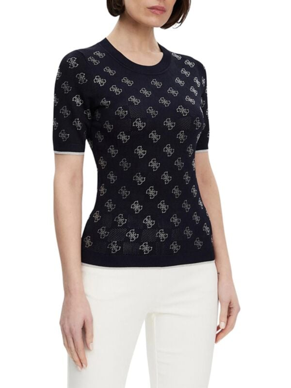 Muški crni Guess pulover kratkih rukava s all-over logo printom