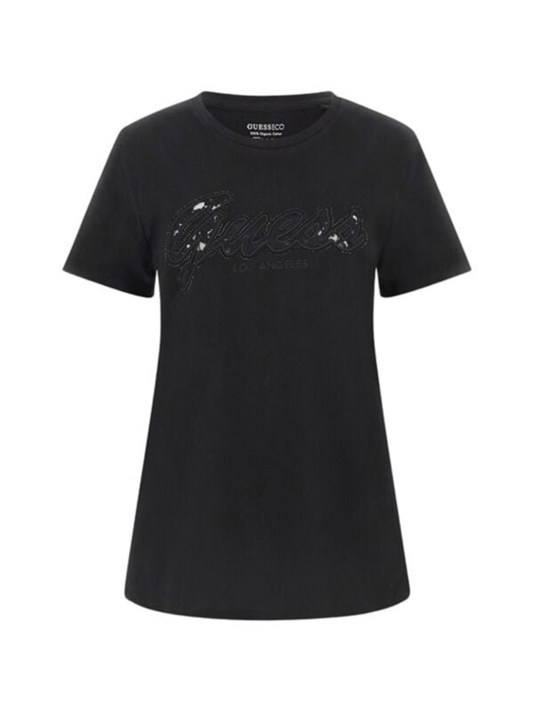Ženska crna Guess majica kratkih rukava s logom na prsima
