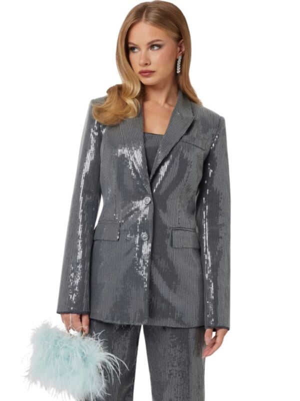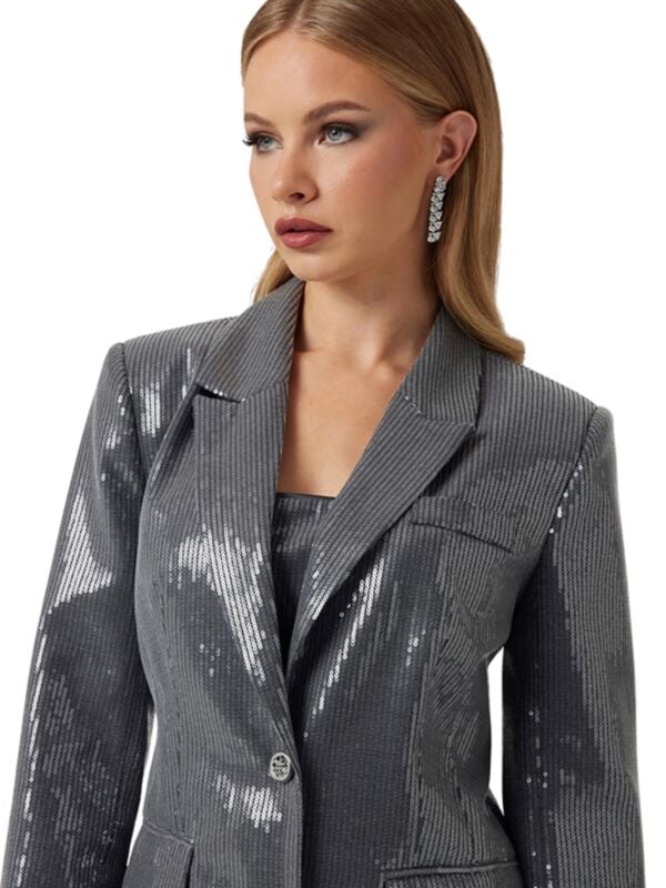 Ženski tamnosivi Guess New Doris šljokasti sako s kopčanjem na dva gumba