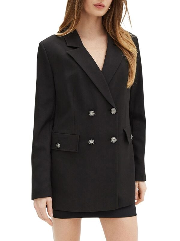 Ženski crni Guess Fiona sako s preklopnim dvorednim kopčanjem