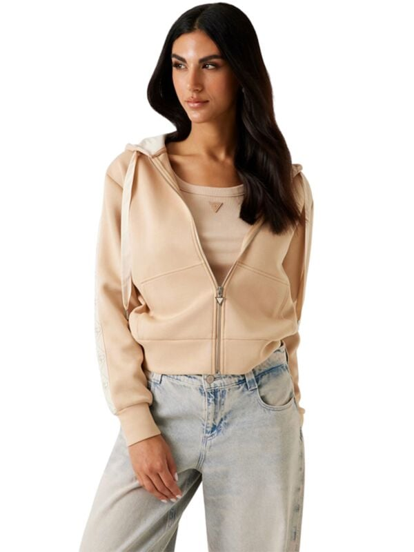 Ženska Guess bež dukserica s kapuljačom i vezicama