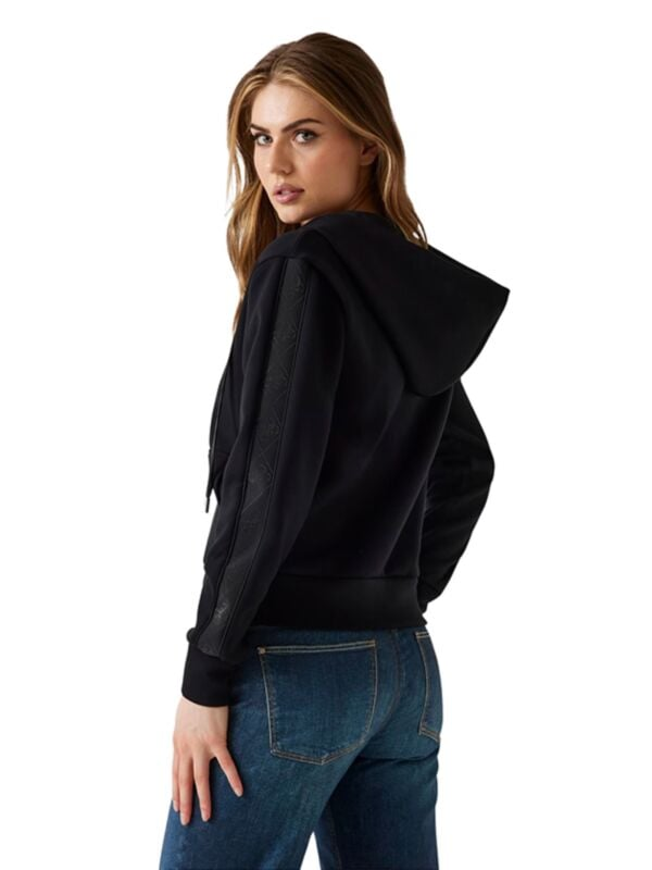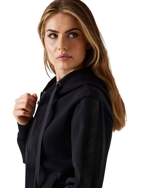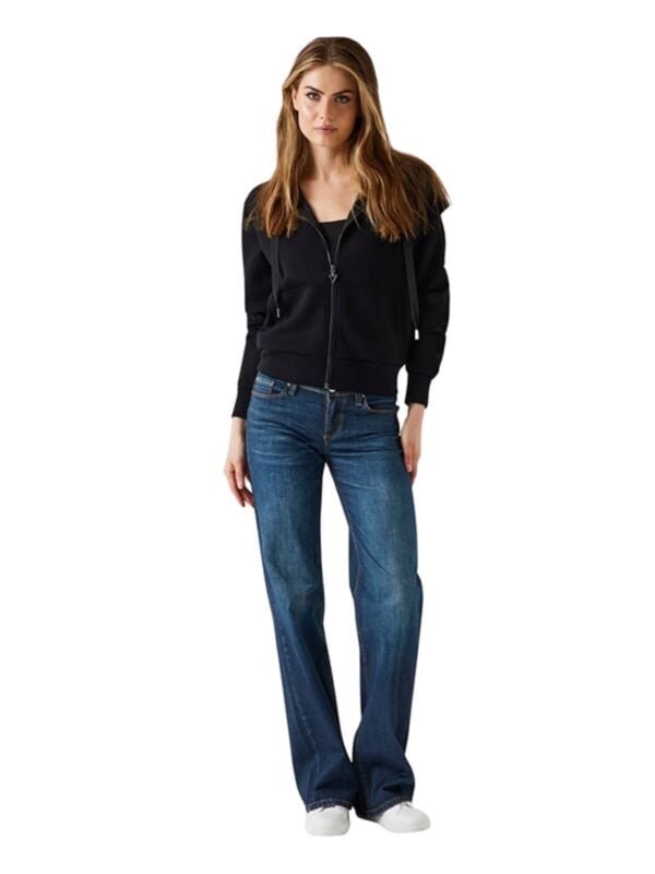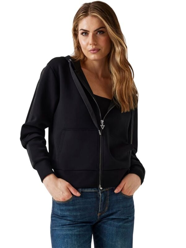 Ženska crna Guess dukserica s kapuljačom i vezicom