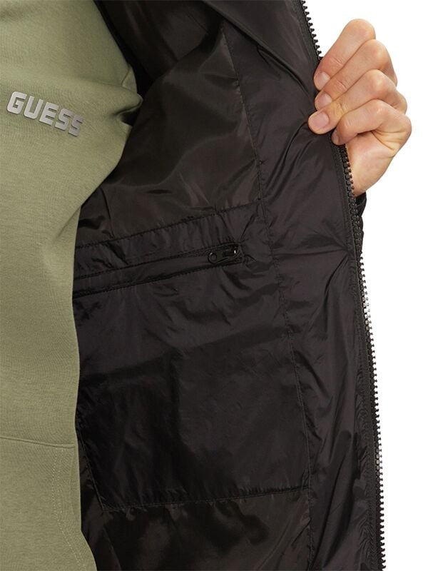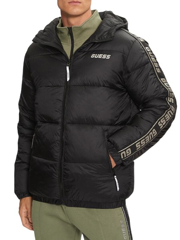 Muška crna Guess Arlo prošivena muška jakna sa zip kopčanjem