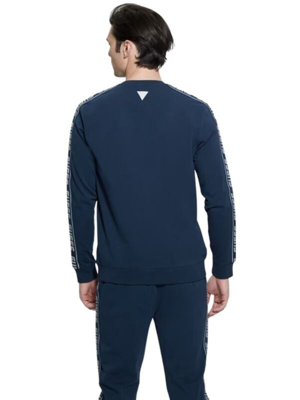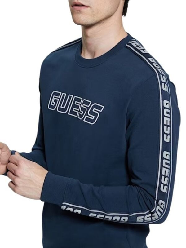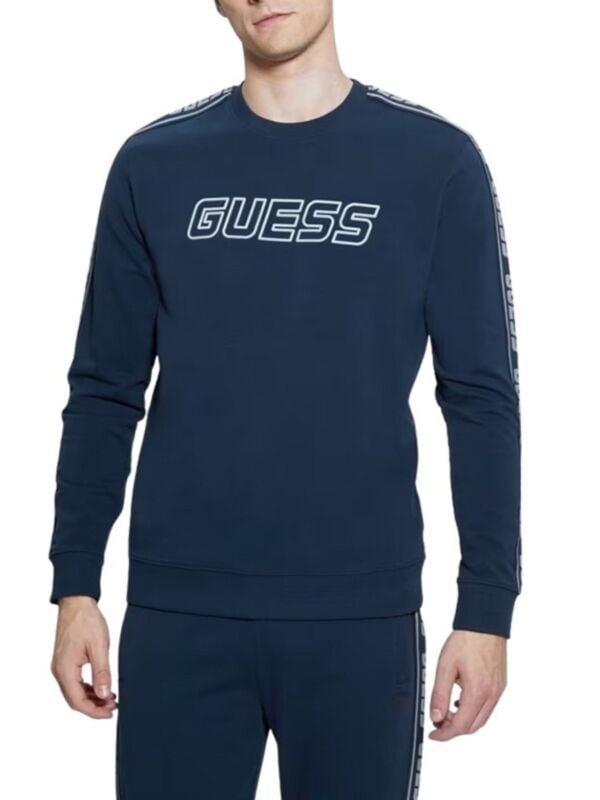 Muški tamnoplavi Guess Arlo duks s okruglim izrezom, logo trakom na rukavima i logom na prsima