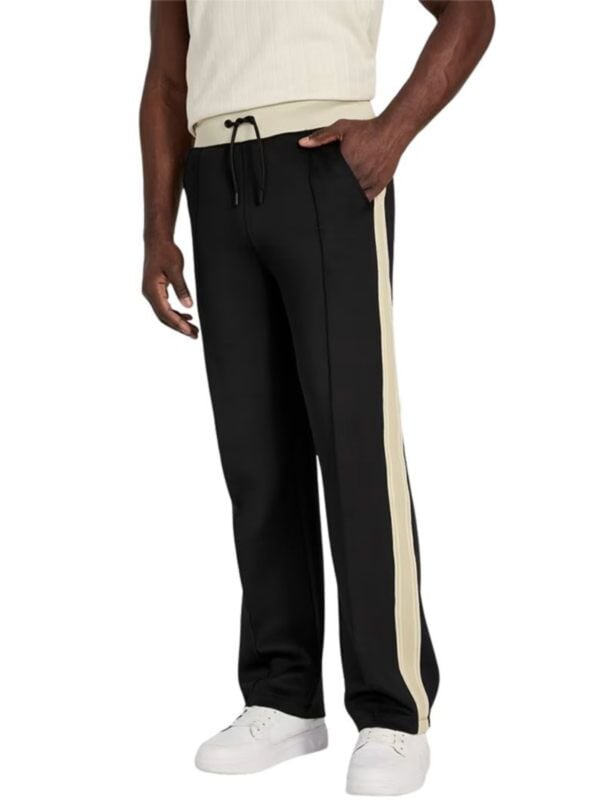 Donji dio muške crne Guess trenerke s kontrastnim bež trakama duž nogavica