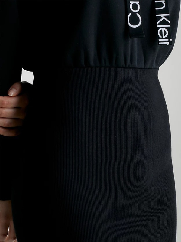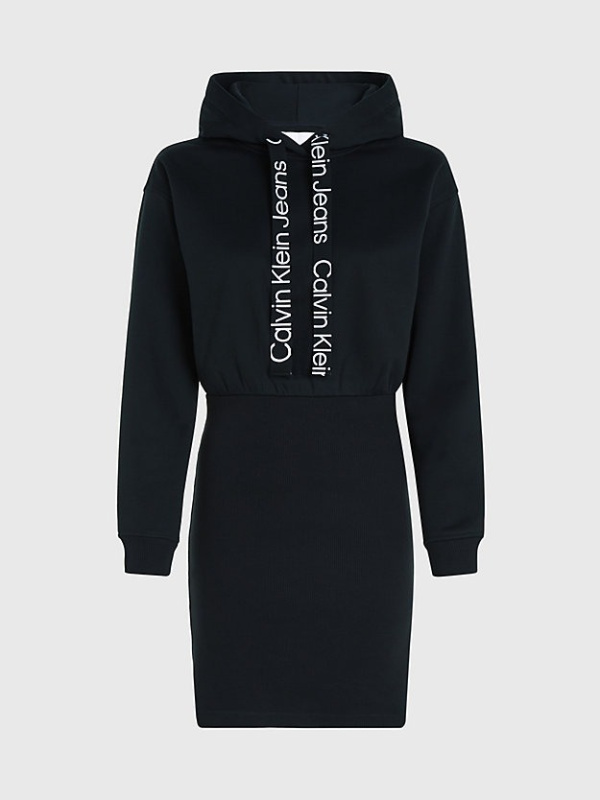 Crna ženska CALVIN KLEIN haljina sa kapuljačom, te vezicama s logom