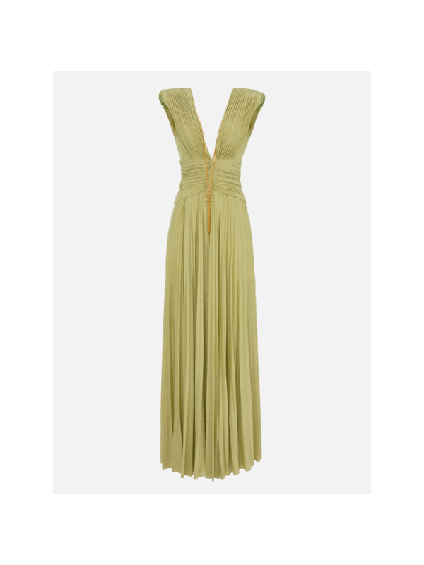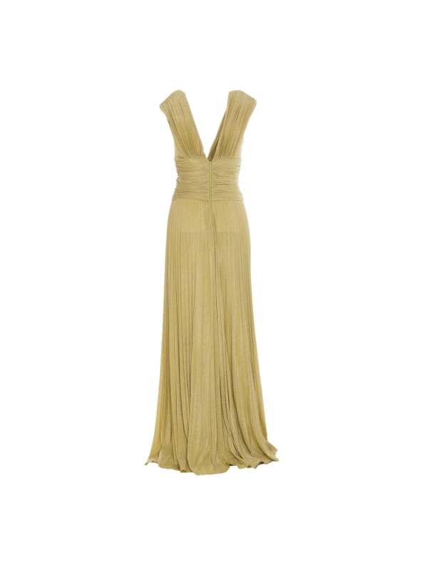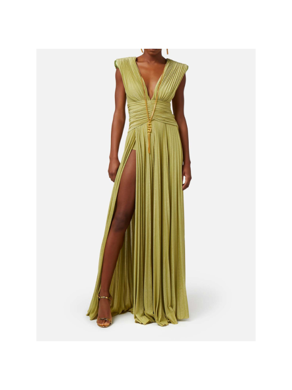 Ženska ELISABETTA FRANCHI maxi haljina za crveni tepih od lurex žerseja sa širokim v-izrezom
