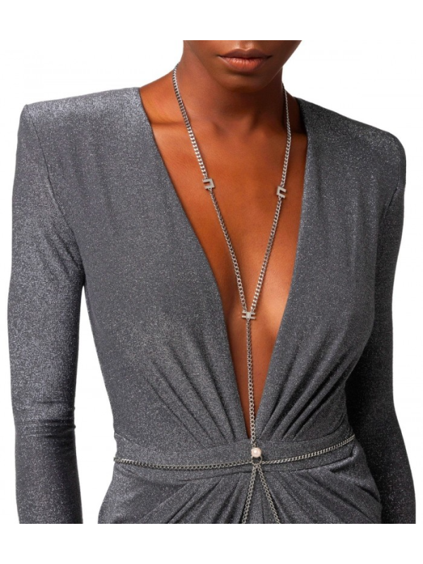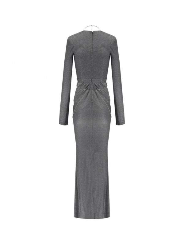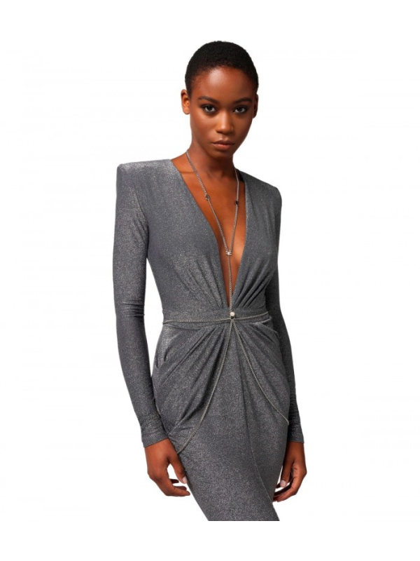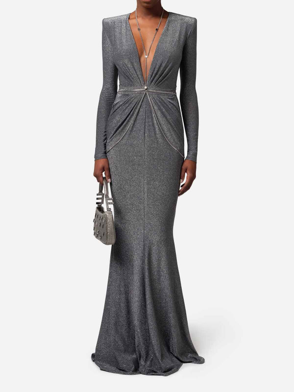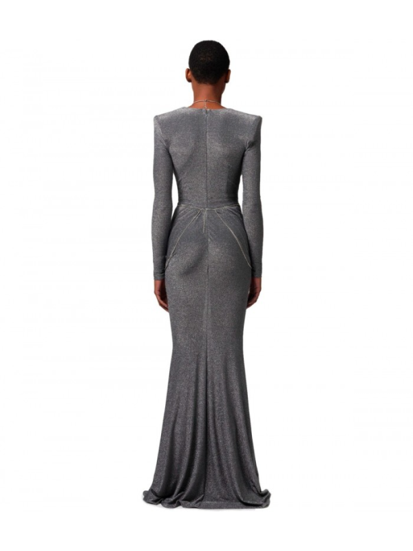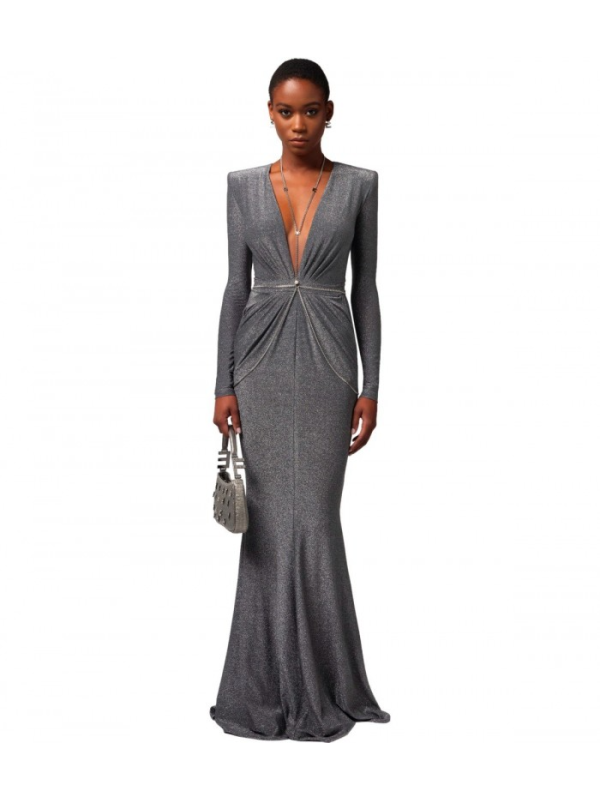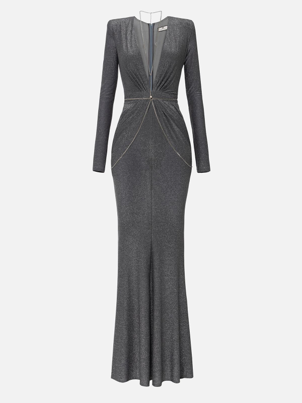 Ženska ELISABETTA FRANCHI red carpet haljina izrađena od lurex žerseja u nijansama tamno sive boje.