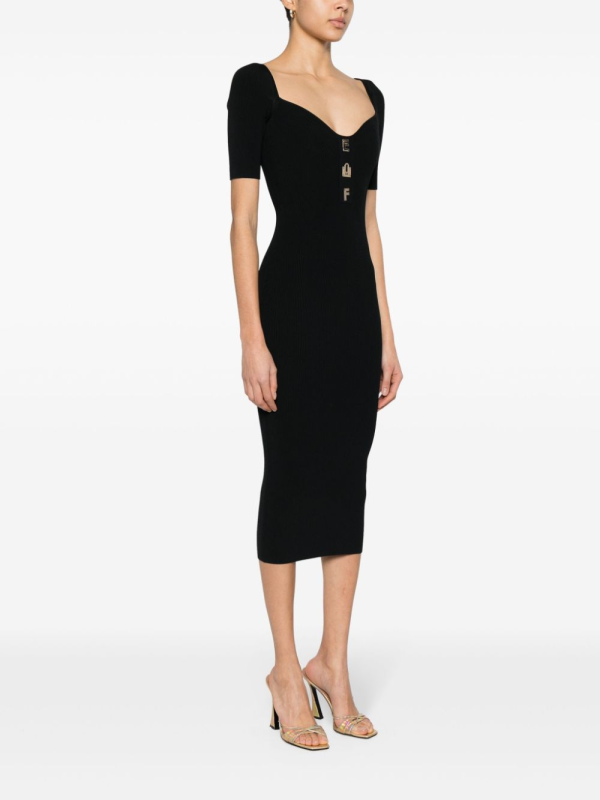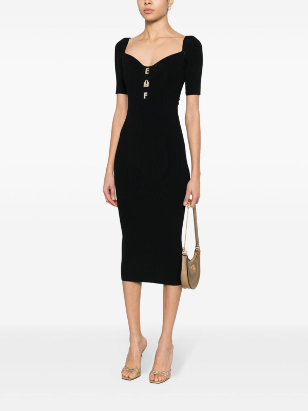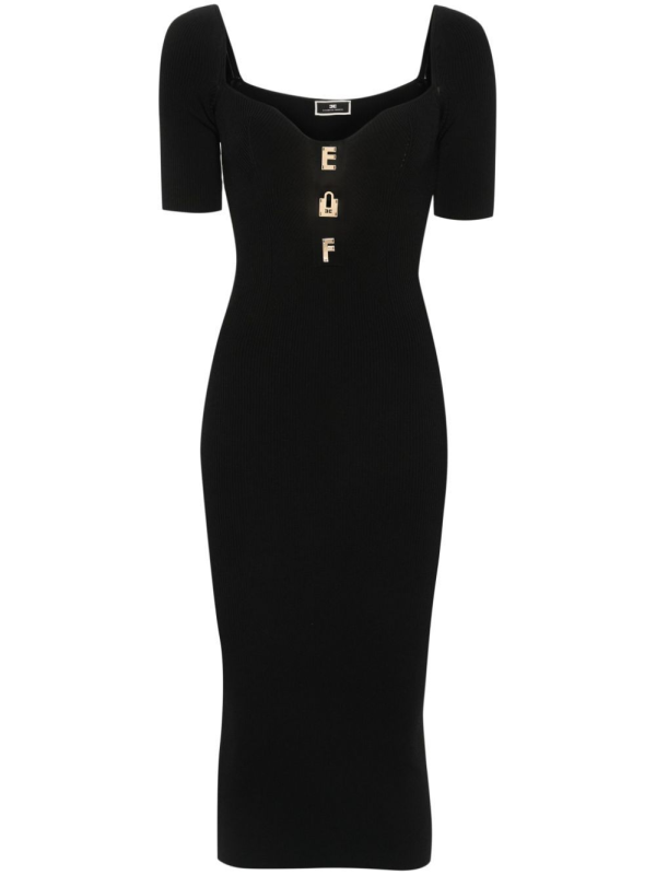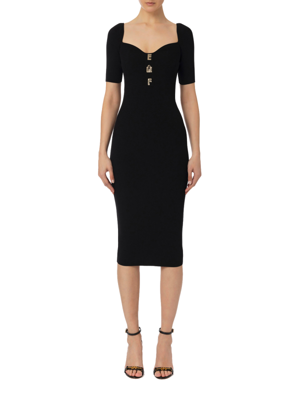 Ženska ELISABETTA FRANCHI rebrasta midi haljina od viskoze s natpisom