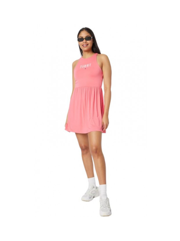 Kratka haljina Tommy Hilfiger koja je savršena za vruće ljetne dane. Zahvaljujući ugodnom materijalu, u njima ćete se osjećati izuzetno ugodno tijekom cijelog dana. Haljina je bez rukava i zanimljivog kroja na leđima. U struku imaju elastičnu traku koja lijepo ističe struk. Blago su A kroja. Na prsima s prednje strane nalazi se logo. Haljina je savršena uz tenisice, ali nećete pogriješiti ako je nosite uz ljetne sandale.