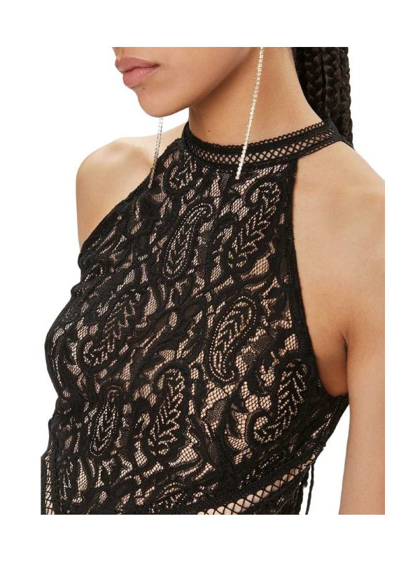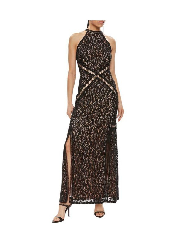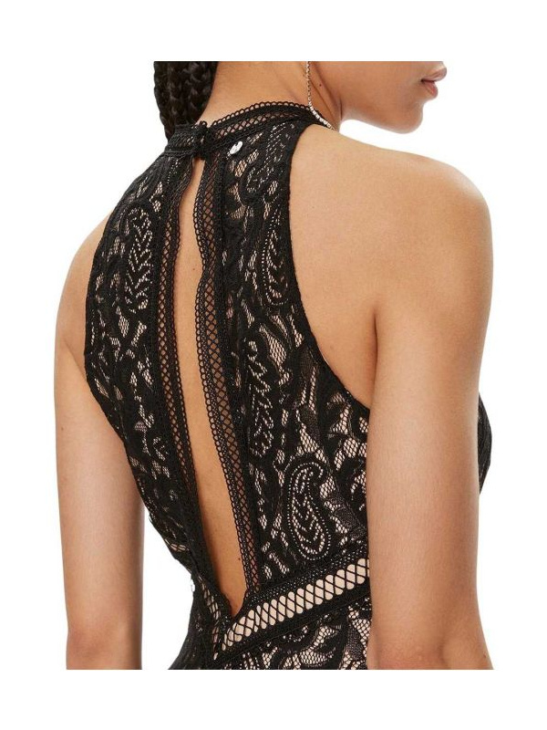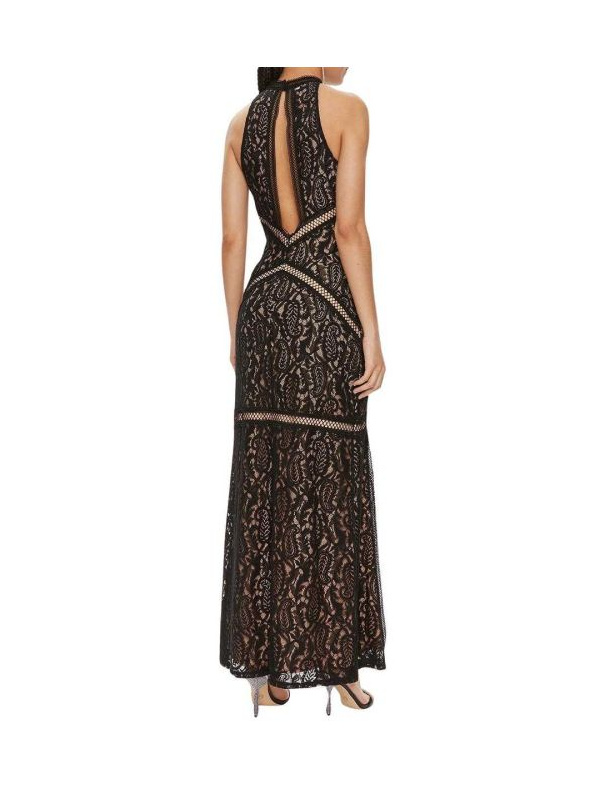 Guess Liza elegantna crna maxi haljina od čipke, sa rupičastim radom