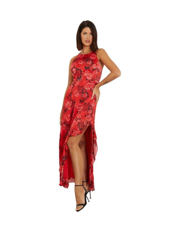 Guess Evangelina romantična duga crvena haljina sa cvjetovima