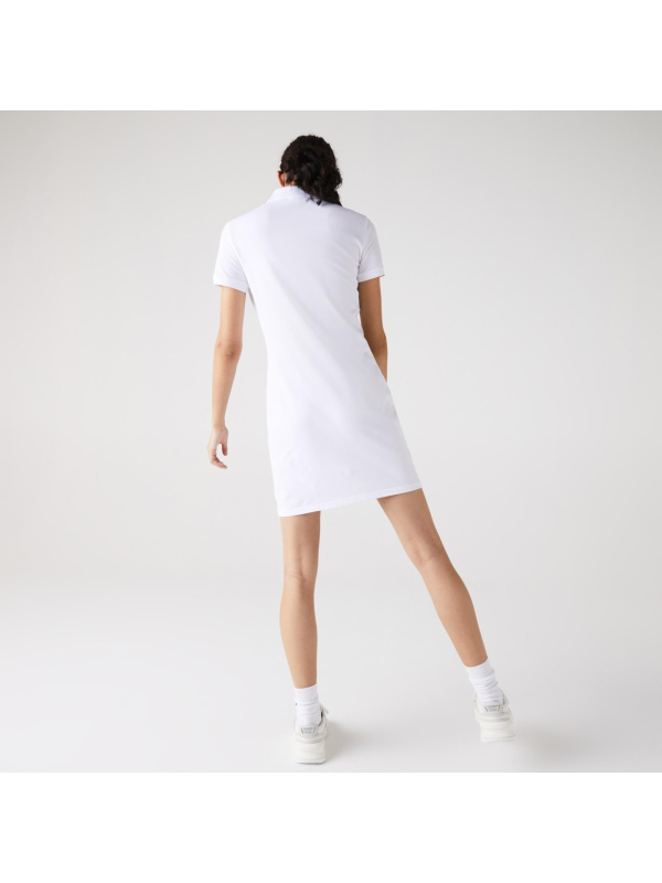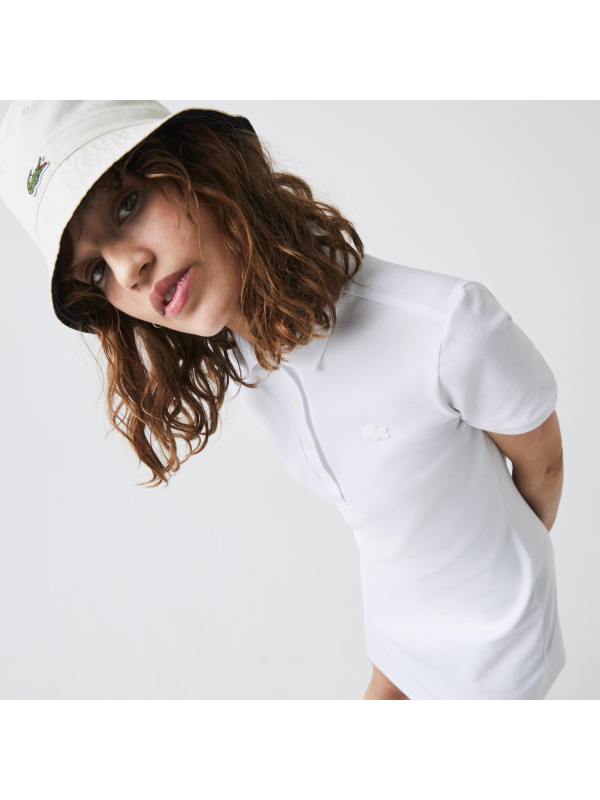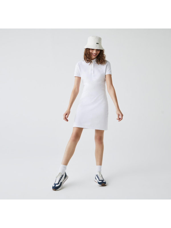 Ženska Lacoste pamučna bijela rastezljiva polo haljina