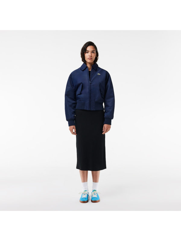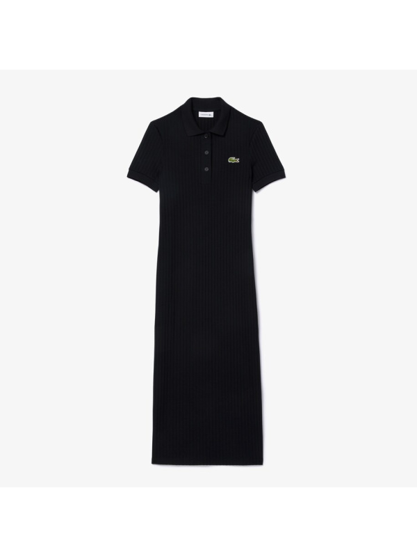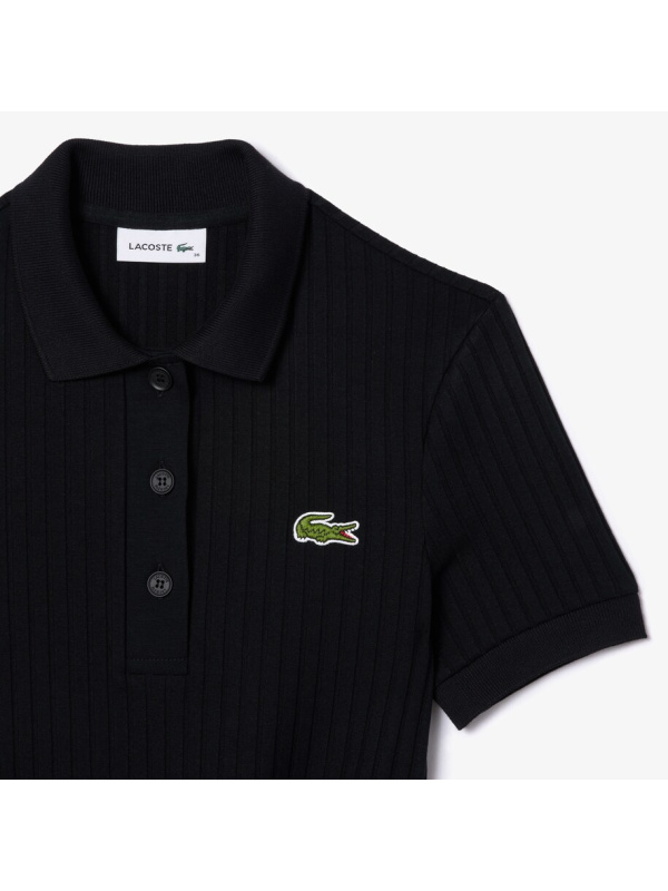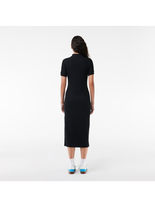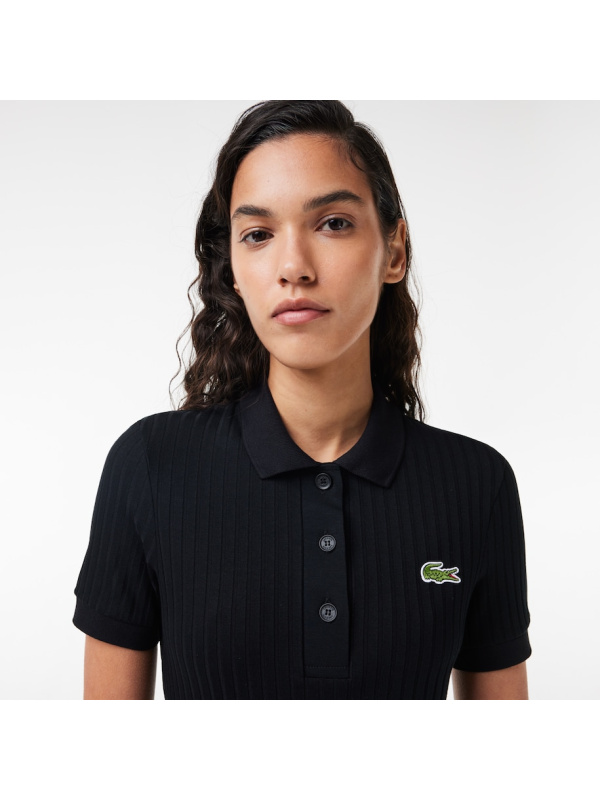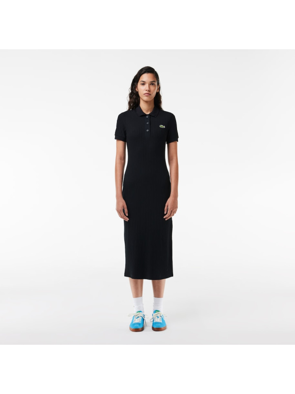 Ženska crna Lacoste midi haljina sa polo kragnom