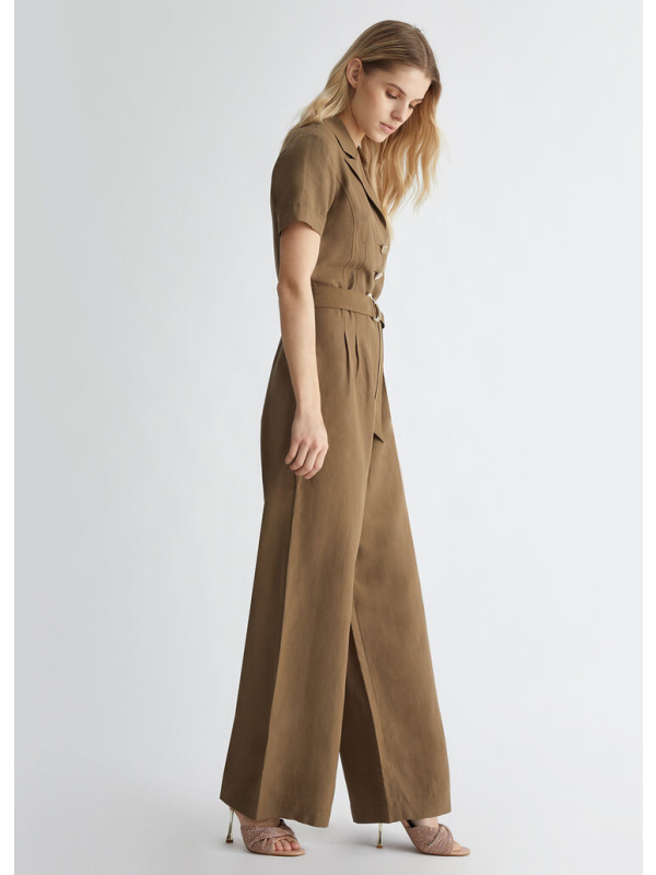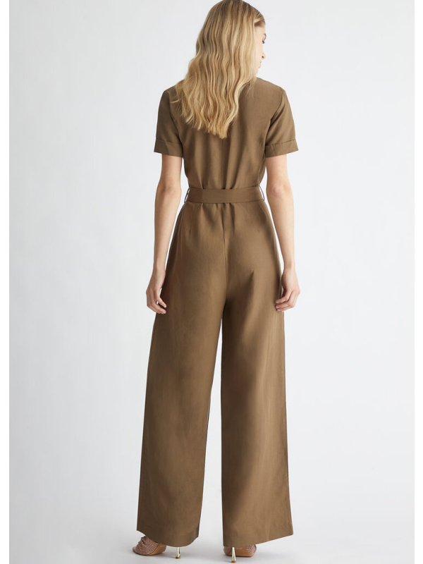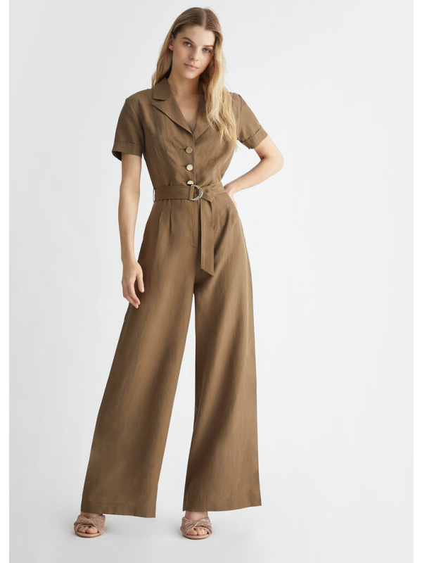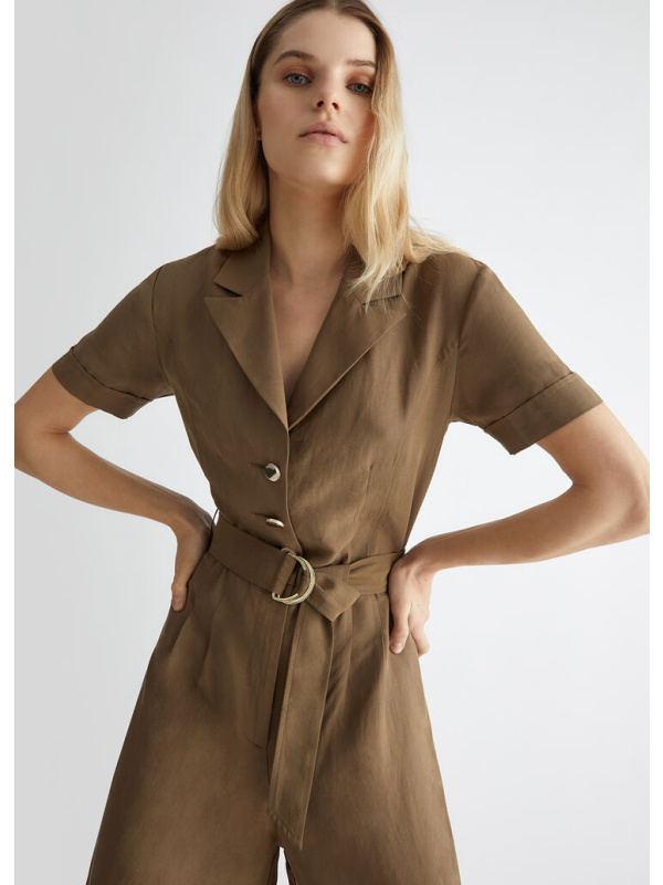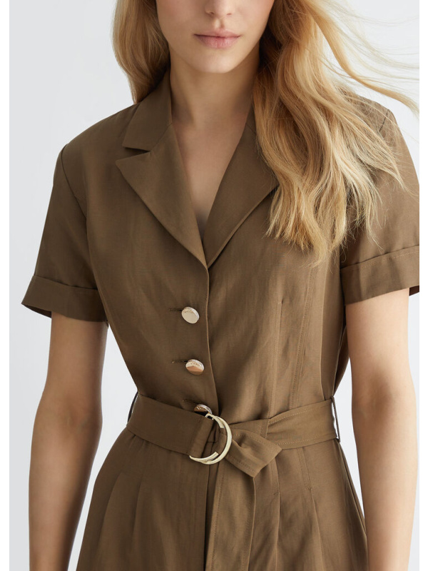 Ženska maslinasta LIU JO lanena haljina s remenom