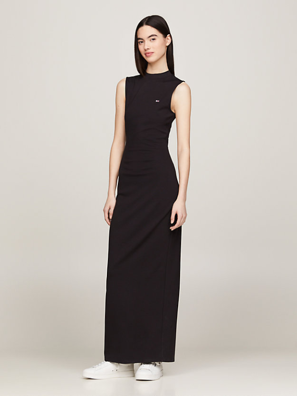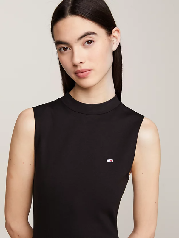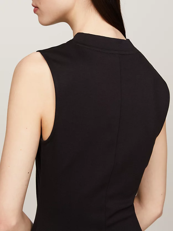 Ova Tommy Hilfiger haljina bez rukava uz tijelo spaja upečatljiv stil i jednostavnu udobnost sa svojim dizajnom dolčevite i širokim porubom.