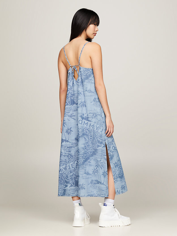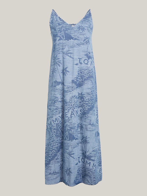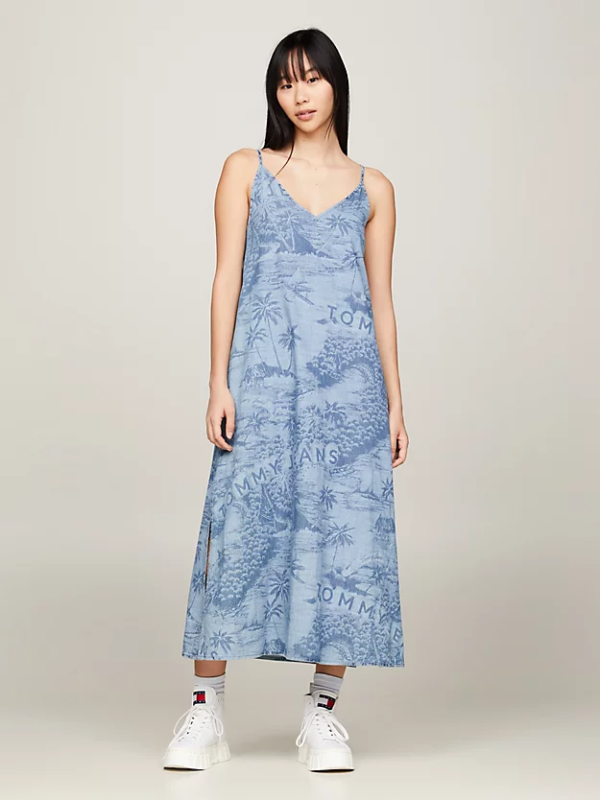 Gotovo da možete osjetiti otočki povjetarac u ovoj prozračnoj Tommy Hilfiger maksi haljini od čistog pamuka, s havajskim printom i nježnim naramenicama koje se samovezuju.