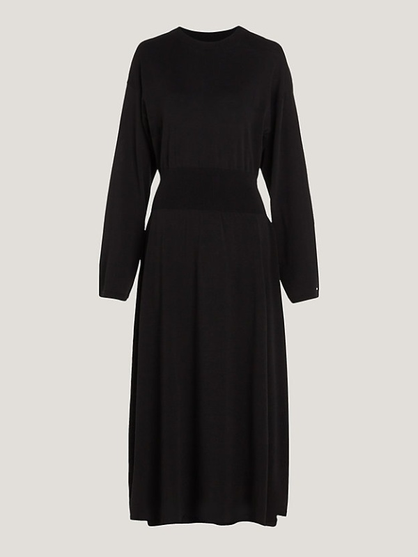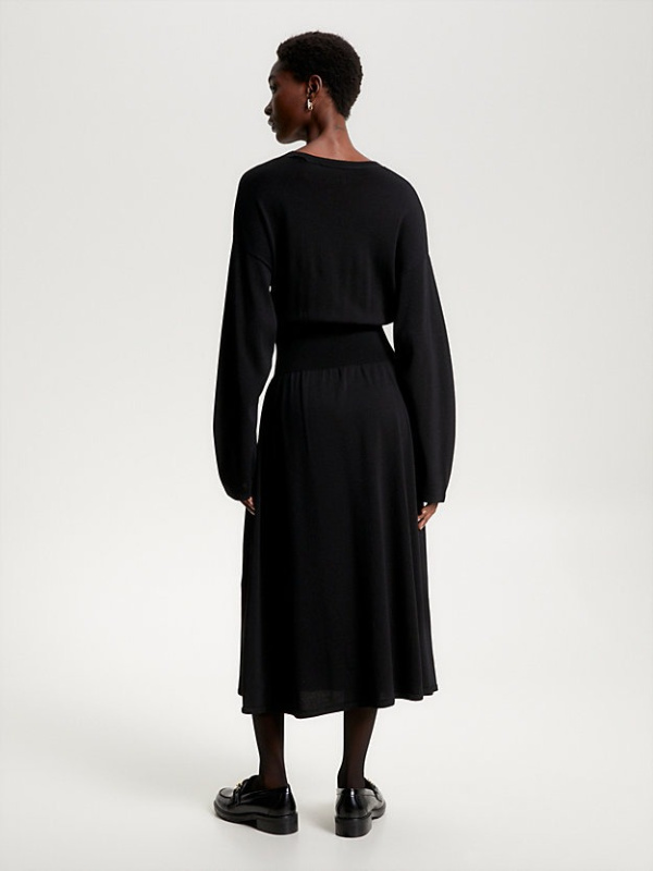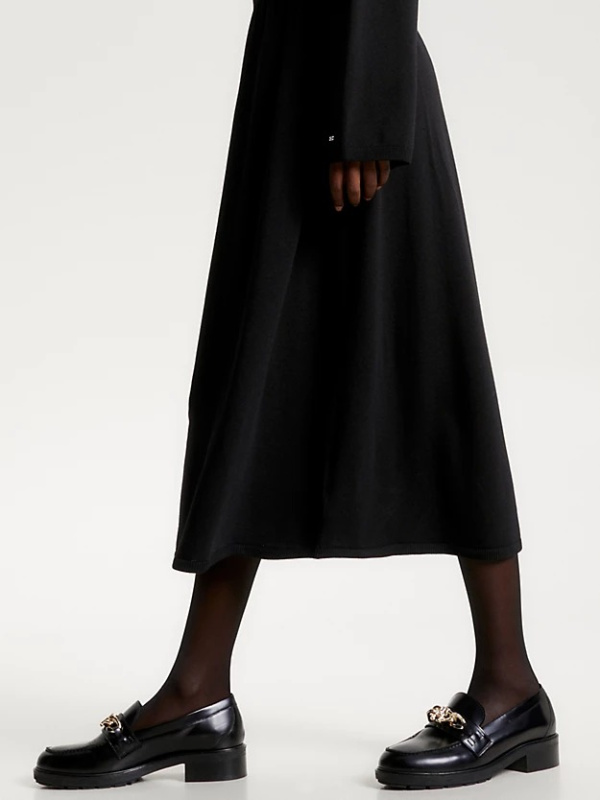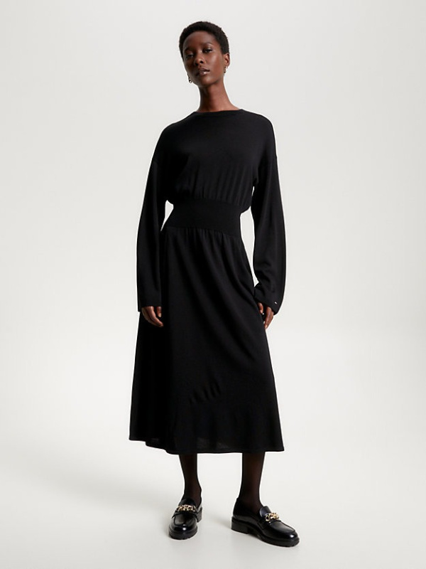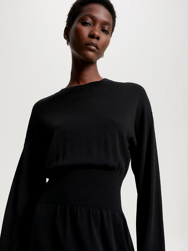Izrađena od lepršavog žerseja do opuštene, pripijene i lepršave siluete, ova haljina kombinira udobnost s dramatičnom estetikom