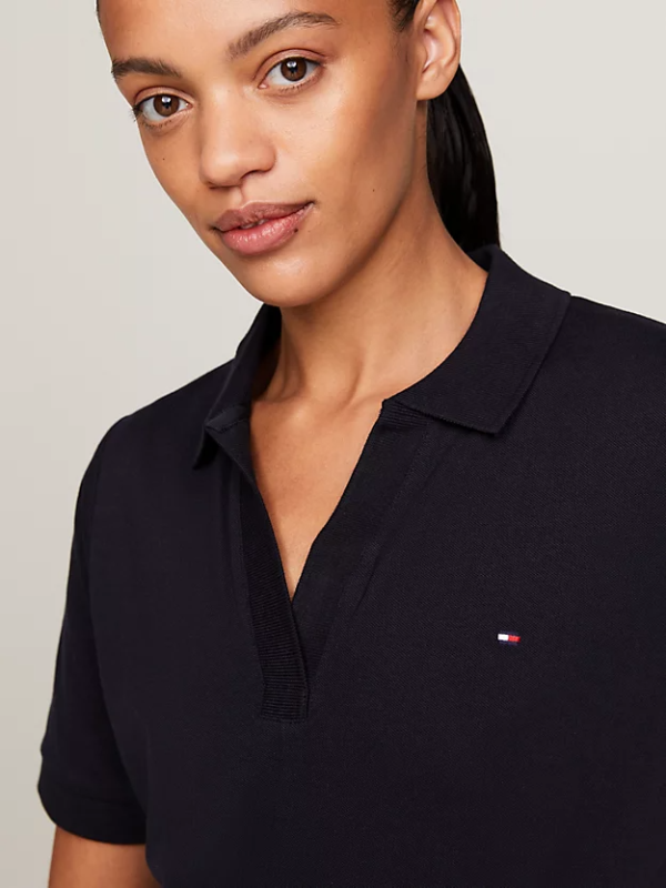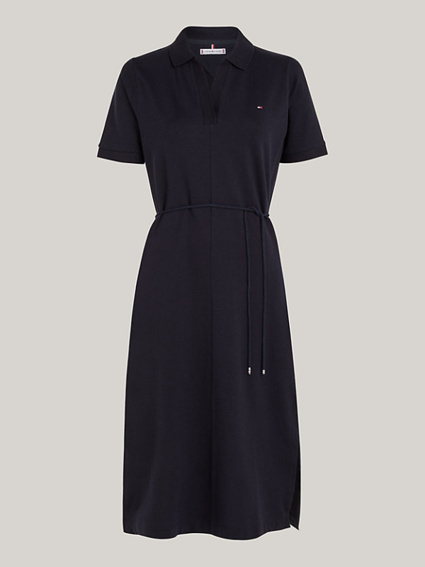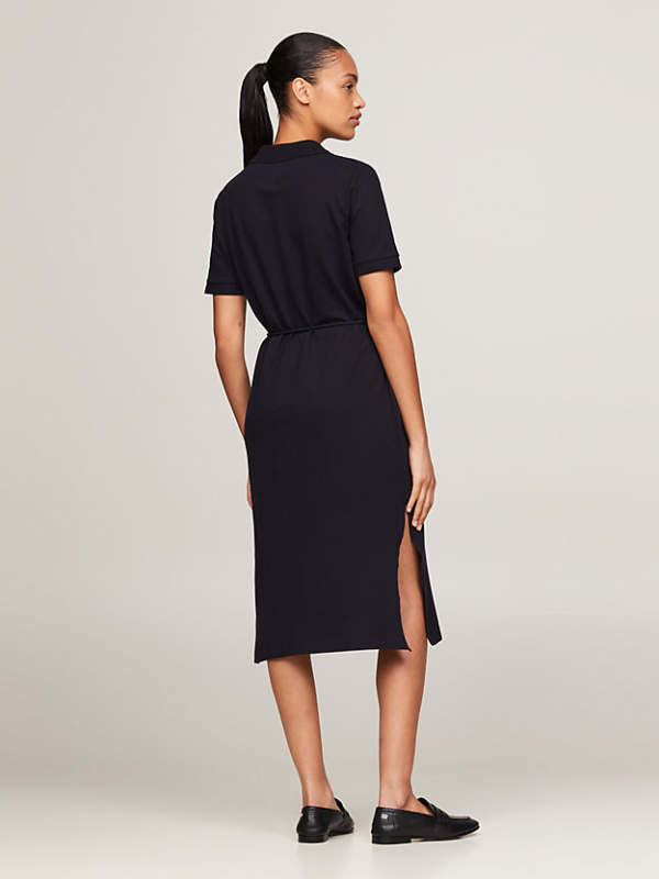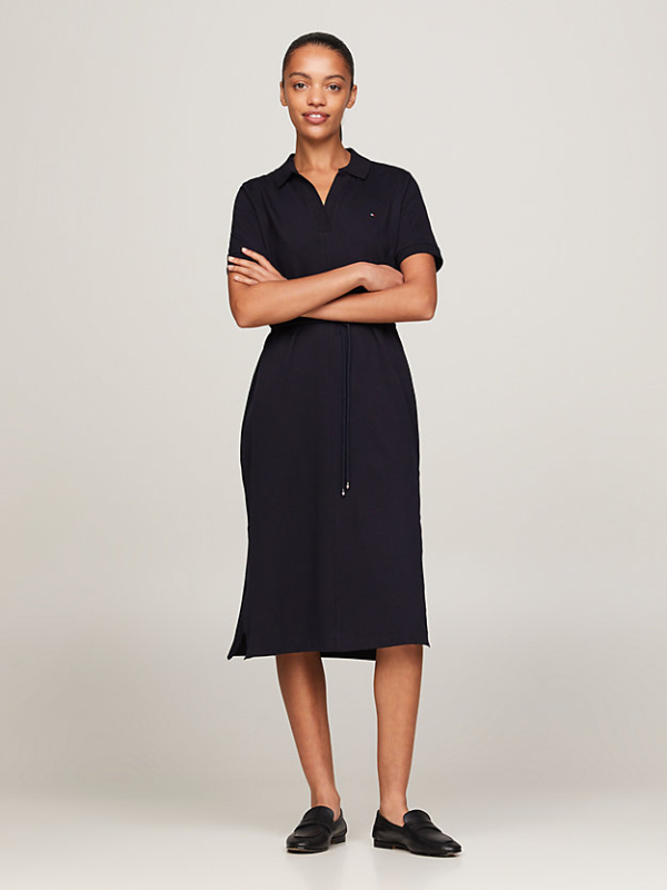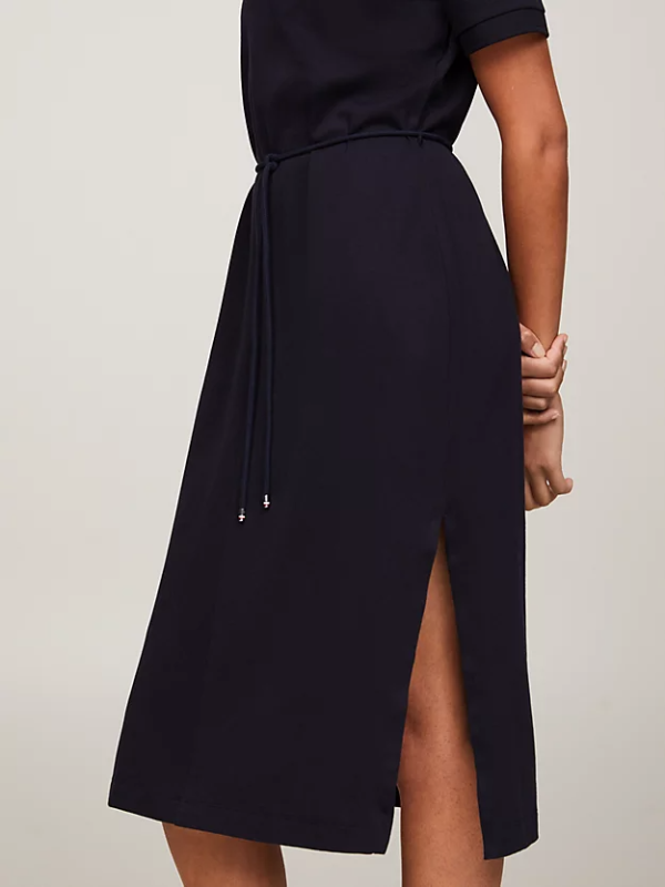 Ova Tommy Hilfiger midi haljina ima sportski dojam zahvaljujući polo ovratniku, dok remen koji se samovezuje osigurava laskavu formu.