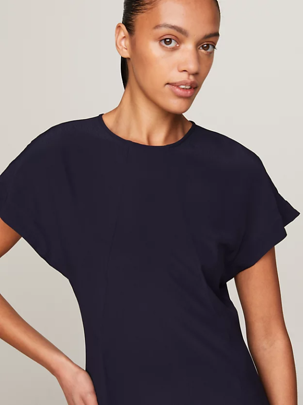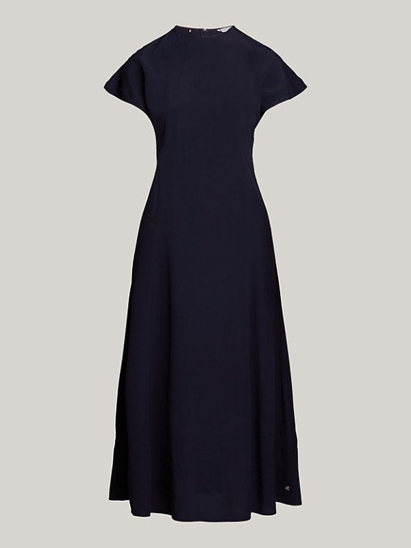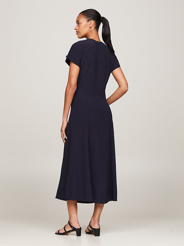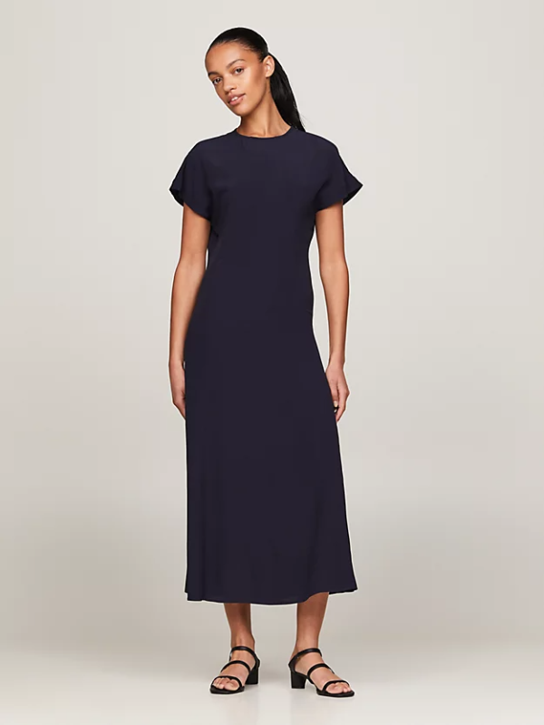 Sa svojom elegantnom siluetom koja se spaja, šišmiš rukavima i lepršavim rubom, ova Tommy Hifliger maksi haljina je savršena za vašu sljedeću svečanu prigodu.