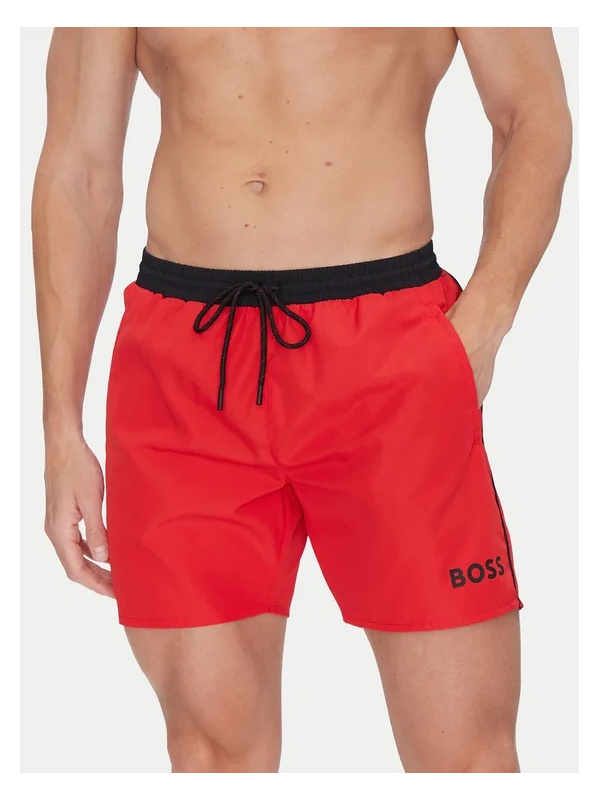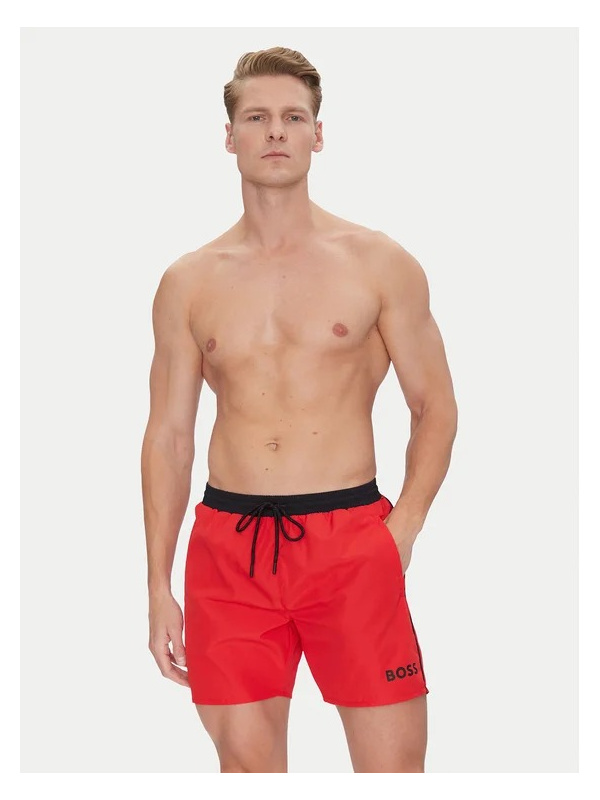 Muški crveni BOSS kupaći šorc s crnim pojasom