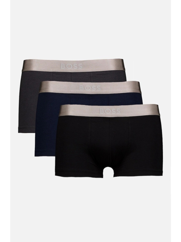 Pakiranje od tri muške BOSS bokserice u crnoj, plavoj i sivoj