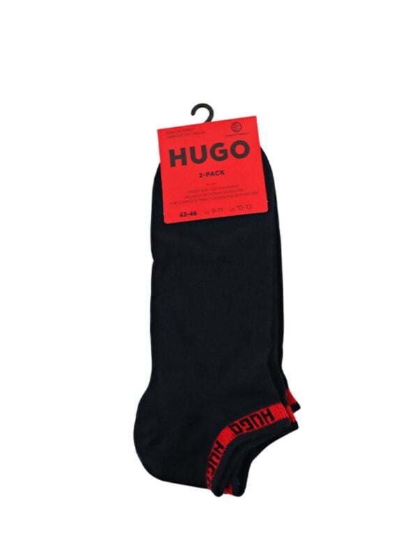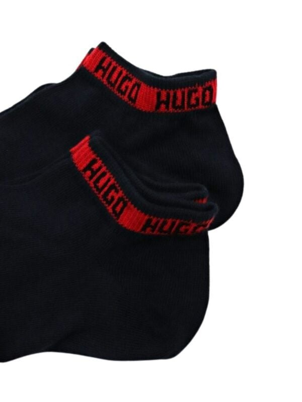 Pakiranje od dva para muških tamnoplavih HUGO kratkih čarapa s crvenom logo trakom