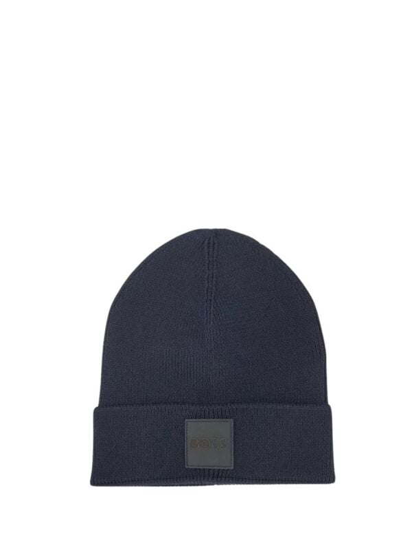 Muška tamnoplava podvijena Boss Foxxy kapa sa logo aplikacijom